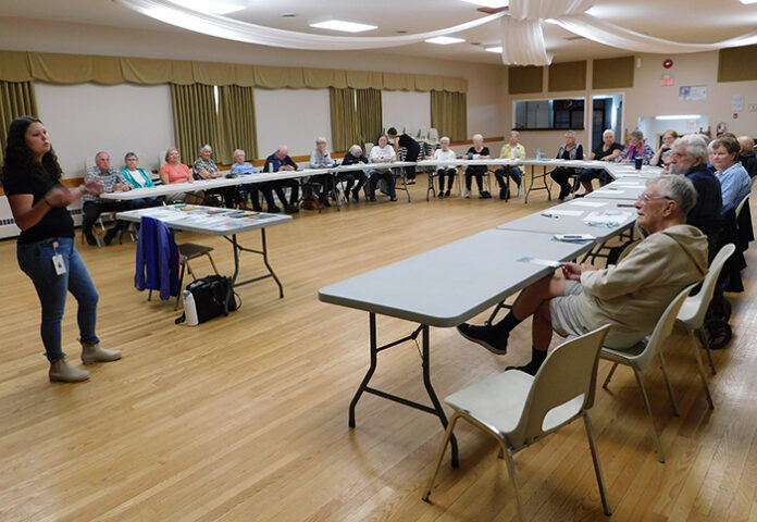L’ISLE-AUX-ALLUMETTES – Twenty-five seniors gathered at Harrington Community Centre, October 7, for an informative session hosted by the Connexions Community Resource Centre. The presentation, led by social worker Angie Vaillancourt from the Centre intégré de santé et de services sociaux de l’Outaouais (CISSSO), focused on health and social services available to seniors in the region.