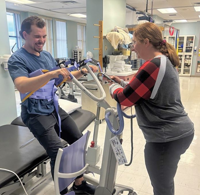 Photo : A rehabilitation lift, funded by the Pontiac Community Hospital Foundation, is used by staff at the Shawville hospital to safely assist patients with mobility during recovery. (Photo: CISSSO)