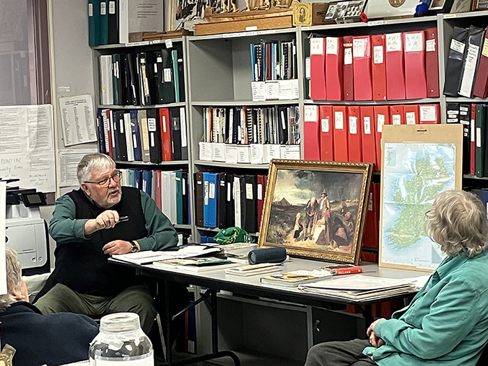 Photo: Dr. Thomas O’Neill gave a presentation titled “Our Irish Ancestors” to a full house at the Pontiac Archives March 18. (DP)